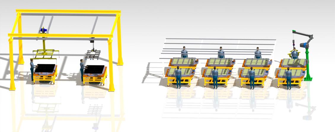 電池包吊裝上線后,由輸送線將電池包輸送至各個獨立拆解工位,在獨立拆解工位上完成整個電池包的拆解工序。